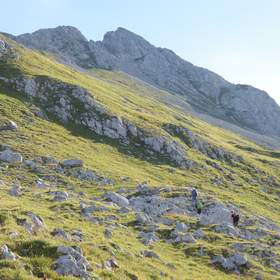 Wir fahren mit dem Auto zum Hahntennjoch und steigen Richtung Anhalter Hütte in einer knappen Stunde auf zum Steinjöchle. Von hier entscheiden wir uns zunächst für den Maldongrat. Den Falschkogel könnten wir nachher immer noch anhängen. Es geht noch ein Stückchen die Wiesen hinauf, bevor wir in den anspruchsvollen Teil unserer Wanderung einsteigen: Über mehrere kleine Schneiden führt der Weg bis unter den Gipfel des Maldongrates und dann in einer Rinne steil hinauf zur Spitze. Die Schneiden sind regelmäßig zu überklettern und in der Rinne ist fast durchweg die Hand am Fels. Wir sind froh, den Steinschlaghelm zu tragen, denn zum einen sind noch weitere Wanderer in der Rinne unterwegs, zum anderen müssen wir hier auch mit Steinböcken rechnen, die über uns losen Schotter lostreten könnten.