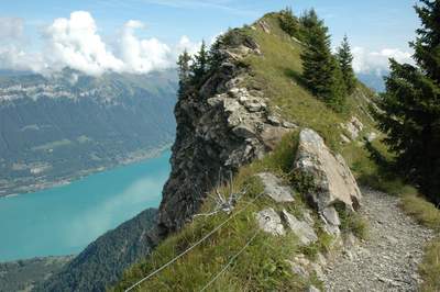 Bei bestem Wetter brechen wir von Wilderswil auf zu unserer dritten und letzten Hüttentour und genießen zunächst die gemütliche Fahrt mit der historischen Zahnradbahn , die uns in einer knappen Stunde auf die Schynige Plattte bringt. Bereits die Fahrt bietet atemberaubende Blicke auf den Thunersee und Interlaken. Von der Schynigen Platte gönnen wir uns den kleinen Umweg um das Gummihorn und über die Daube oder Tuba. Von hier haben wir den herrlichen Panoramablick über Thun- und Brienzersee sowie zum Brienzergrat. Auf einem luftigen Grat wandern wir weiter bis zum Oberberghorn, immer dem Brienzersee im Blick. Den Aufstieg zum Oberberghorn ersparen wir uns, da wir ja heute noch einiges vor haben.