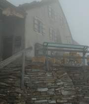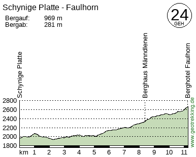 Der Blick nach Süden zu den Eisriesen ist leider in der noch feuchten Luft gegen die Sonne und teilweise von Wolken verdeckt nicht optimal. Der Weg um das Loucherhorn bietet aber auch auf kurze Distanz abwechslungsreiche Aussichten. Nach einem steilen Aufstieg finden wir uns in der Nordflanke des Indrisägissa und als wir diesen passiert haben und in den Taleinschnitt zum Berghaus Männdelen einbiegen, sind wir wieder einmal von Wolken eingeschlossen. Das Faulhorn bekommen wir erst kurz vor dem Schlussanstieg zu Gesicht, der noch einmal 150 Meter steil bergauf führt. Das Berghotel ist eines der ältesten Berggasthäuser der Alpen und weitgehend unverändert. Der Waschraum ist aufgrund der Höhe und des Natursteinmauerwerks eine Eisgrotte. Die Massenlager bestehen aus zwei Schlafsälen mit je 32 Plätzen, die an diesem sonnigen Samstag vollständig ausgebucht sind.