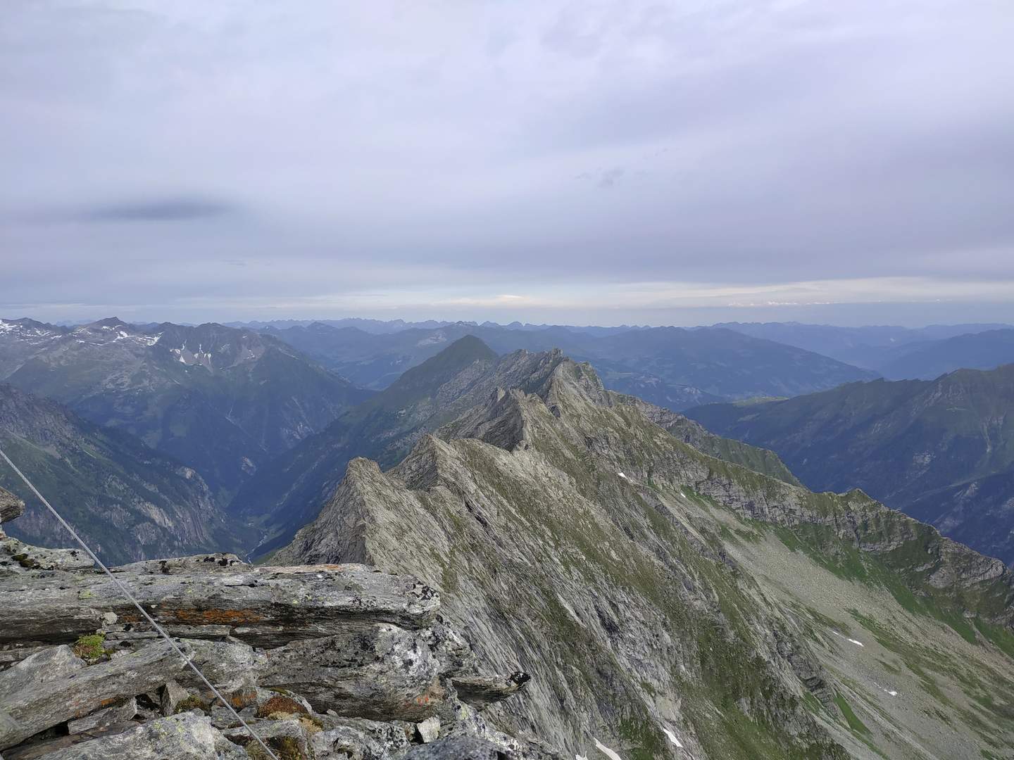 Vom Gigalitz schaut man weit hinunter in den Floitengrund oder hinüber zu den Grinbergspitzen, zum Tristner, zur Penkenalm oder zur Bergstation der Ahornbahn.