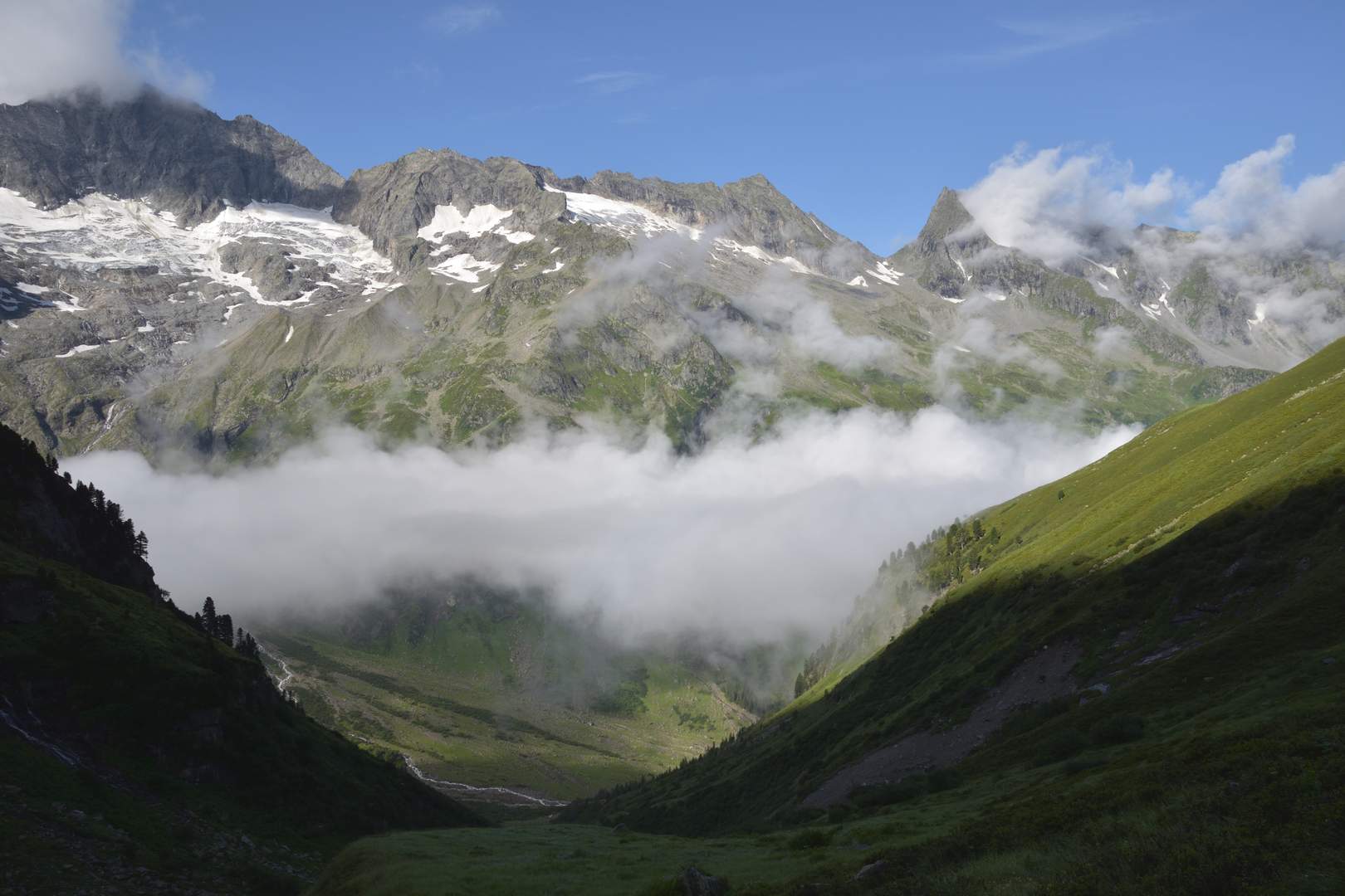 Der große Löffler hüllt sich noch in Wolken, der Gigalitz schaut schon heraus.