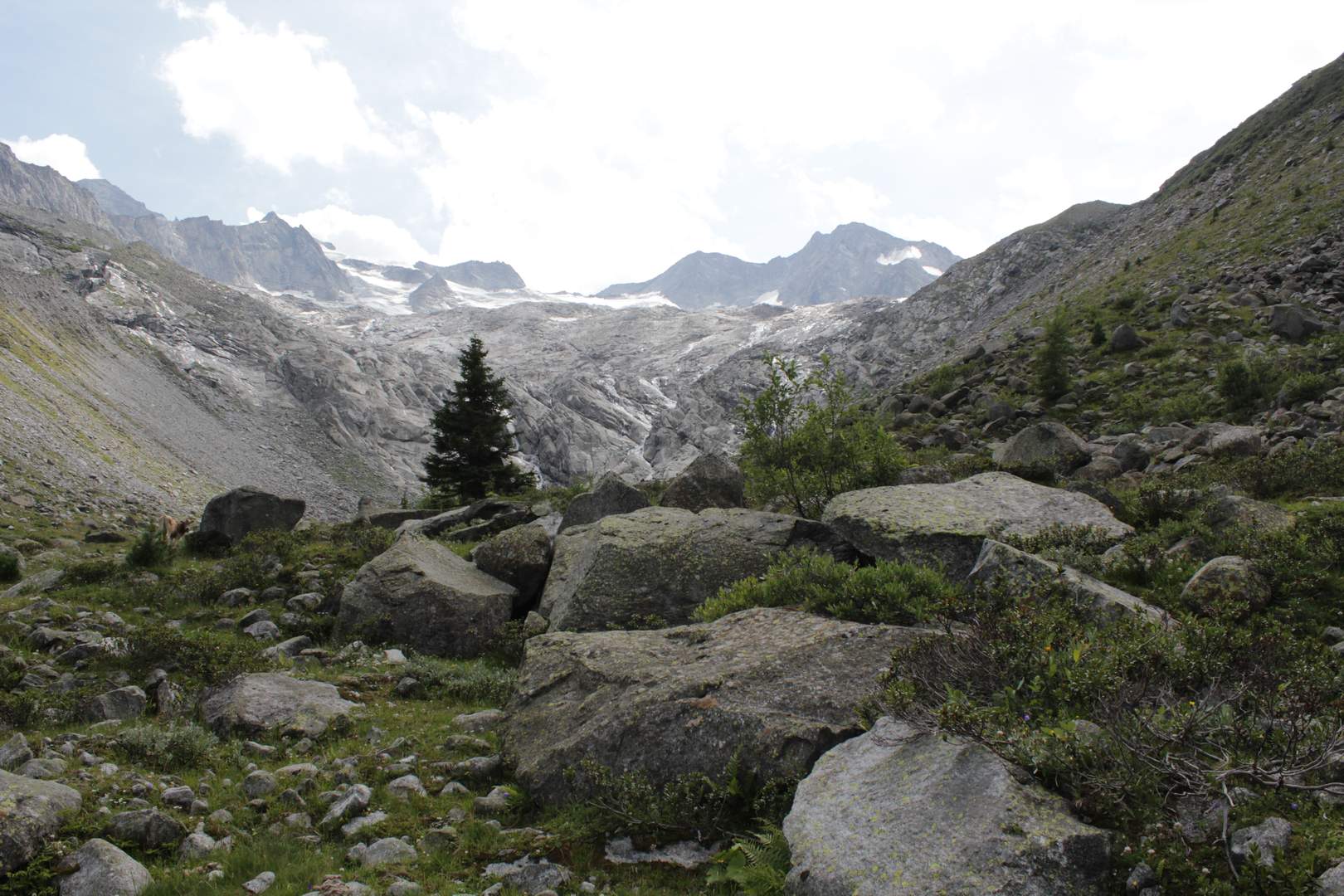 Kleiner und Großer Möseler (3479 m) und ganz links hinten der Turnerkamp (3416 m). Davor das, was vom Waxeggkees noch übrig ist.