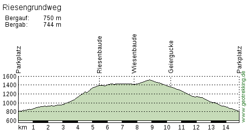 Der Anfang verläuft mäßig ansteigend, vielleicht für die Kinder etwas langweilig durch den Aupa-Grund. Dann steigt der Weg jedoch in steilen Schleifen den wunderschönen Riesengrund hinauf. Mit herrlicher Aussicht auf die Schneekoppe und ins Polnische gelangt man zur Riesenbaude.
